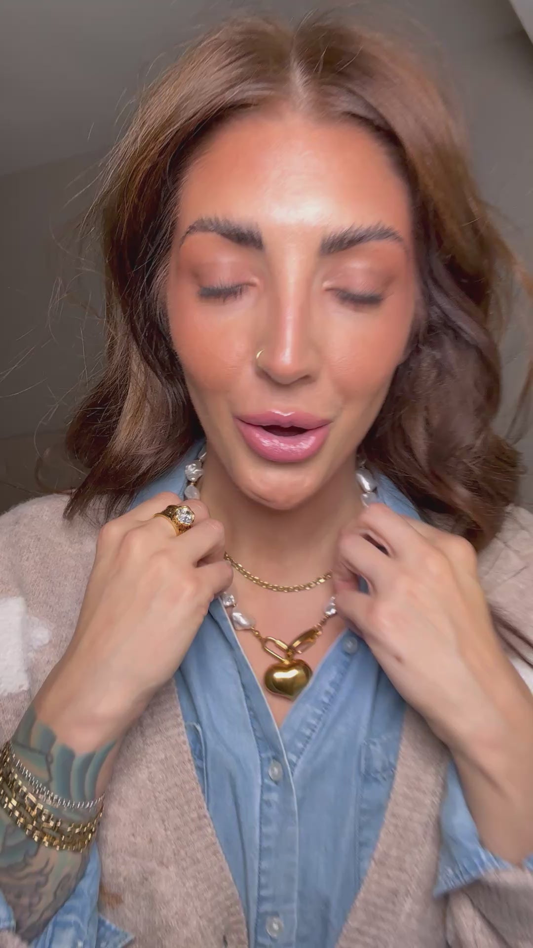 This stunner features irregular freshwater-style pearls strung together with tiny gold accents for that perfect balance of coastal charm and glam edge. The bold gold heart pendant brings a modern twist to a timeless design, catching the light (and attention) with every move.