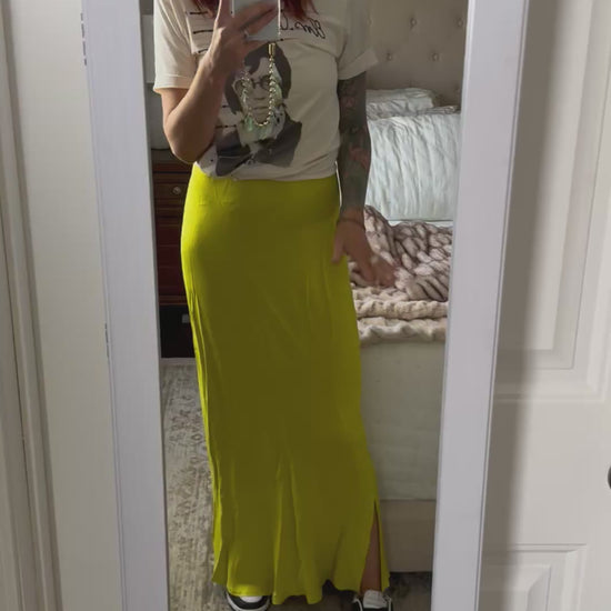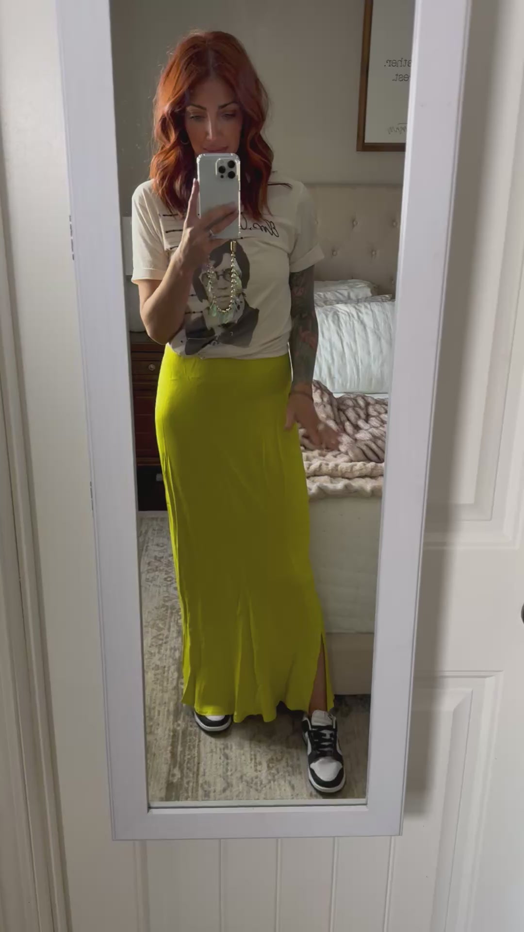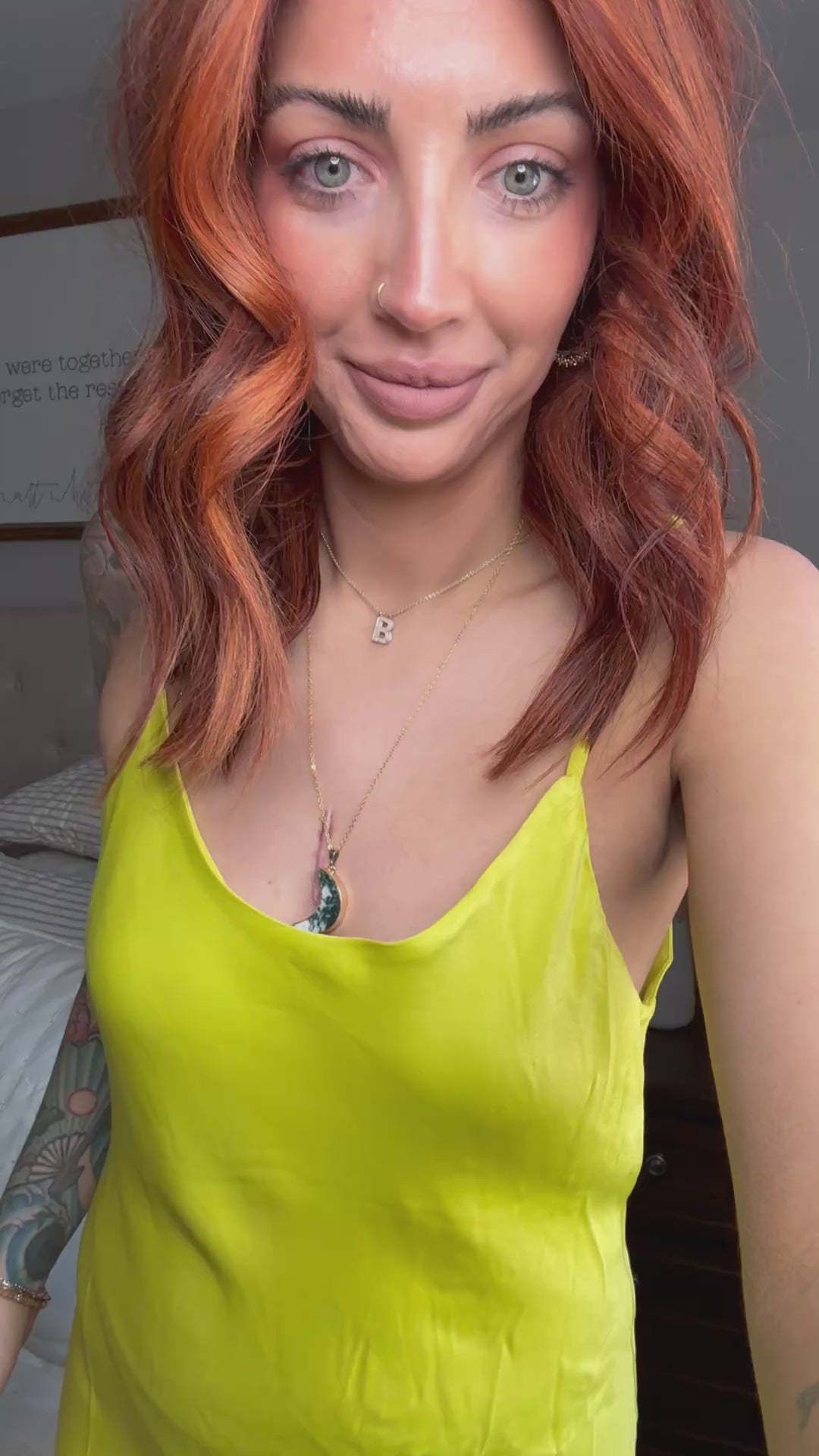 This key lime satin shift dress is so dreamy and sets you up for success this summer/holiday season. We love the flow and the cut, small slits on both sides in the front make it breezy, adjustable straps and a double layer in the chest area.