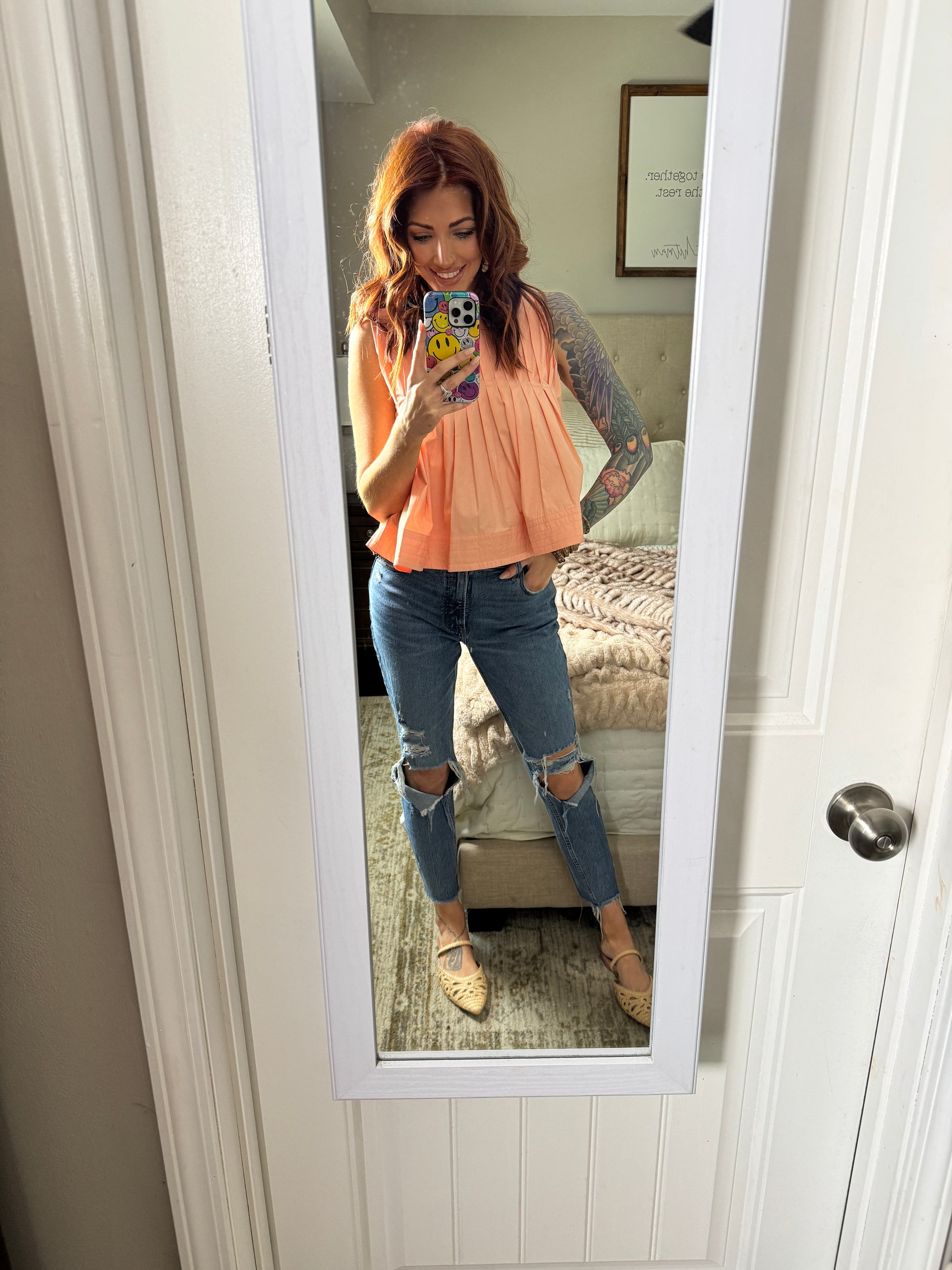 Now featuring a flowy silhouette with precise pleating details, this top is structure with an ease for a versatile modern look. Perfect with tailored pants, skirts, denim or even cut off shorts, you can dress this up or down to make it casual or semi formal making it a perfect accessory for your closet!