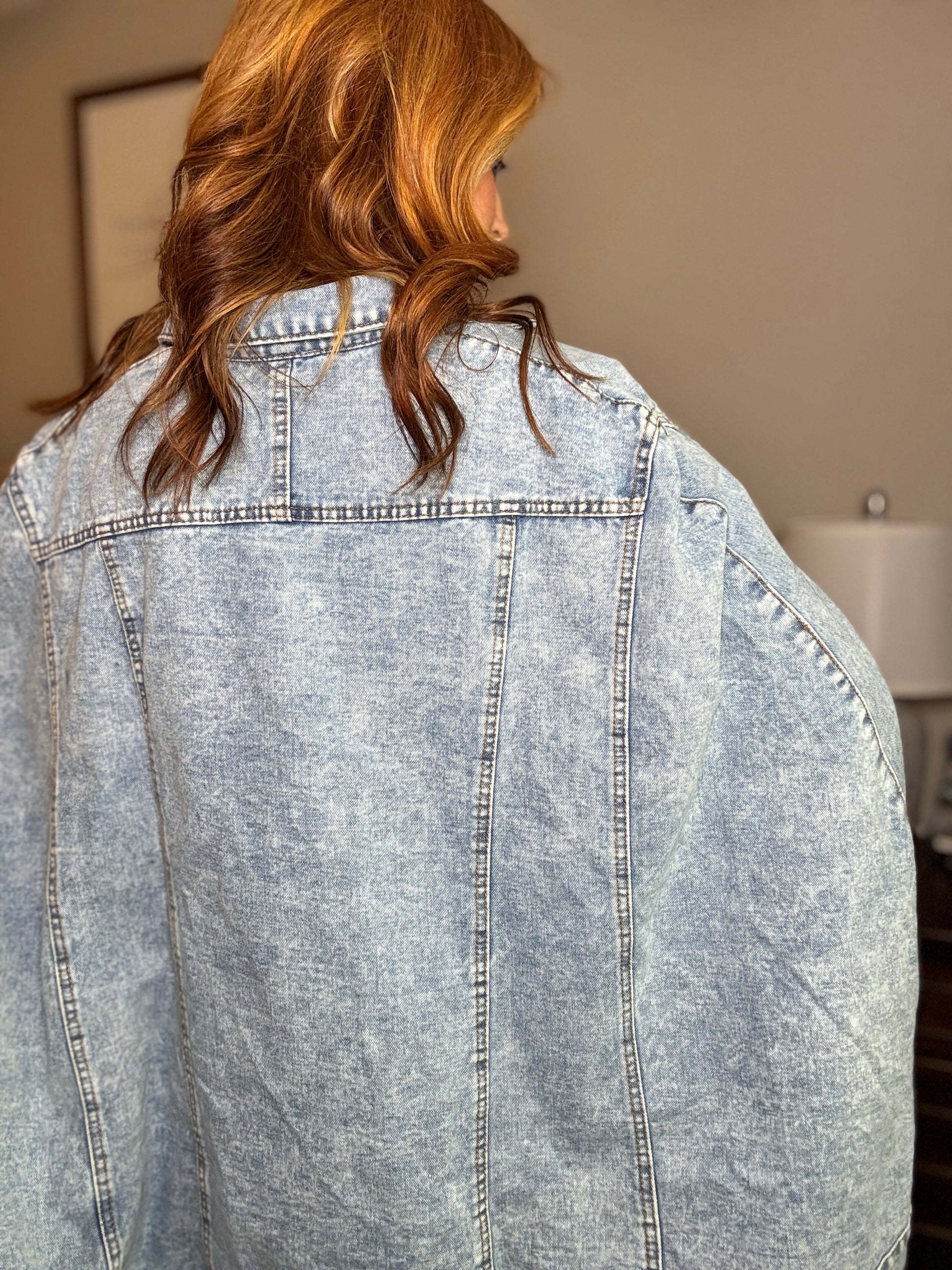 This isn’t your average denim jacket—it’s a full-on moment. Draped like a cape, but tailored to stay in place, this piece gives you that effortless “just-thrown-over-the-shoulders” vibe without the fuss. Thoughtfully designed with hidden arm slits for easy movement, it’s the perfect blend of form and function.
