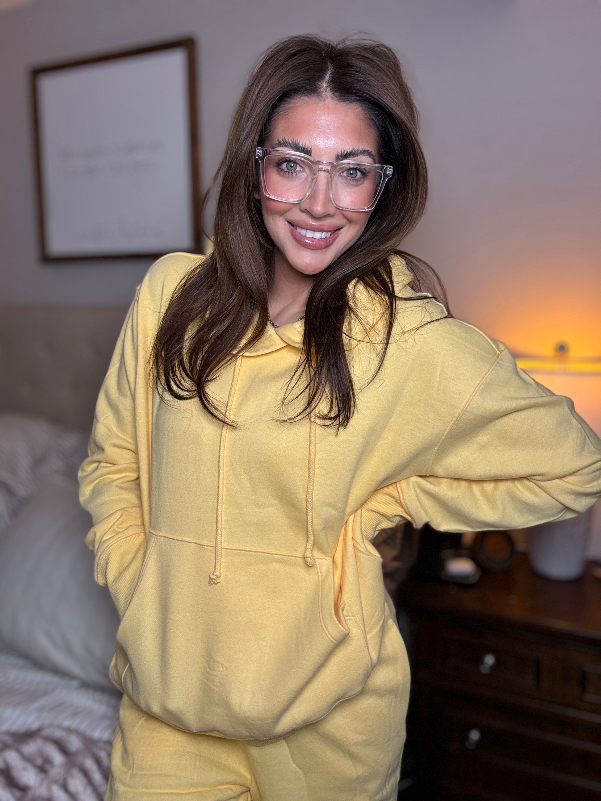 When your mood needs a little sunshine, The Lemon LOUD Set is the answer. This creamy-yellow lounge set gives cozy a statement-making twist. The hoodie is that perfect oversized fit you can throw on with leggings or jeans, and the high-waisted joggers feature a thick drawstring waistband with gathered ankles — comfy, flattering, and tall-girl approved.