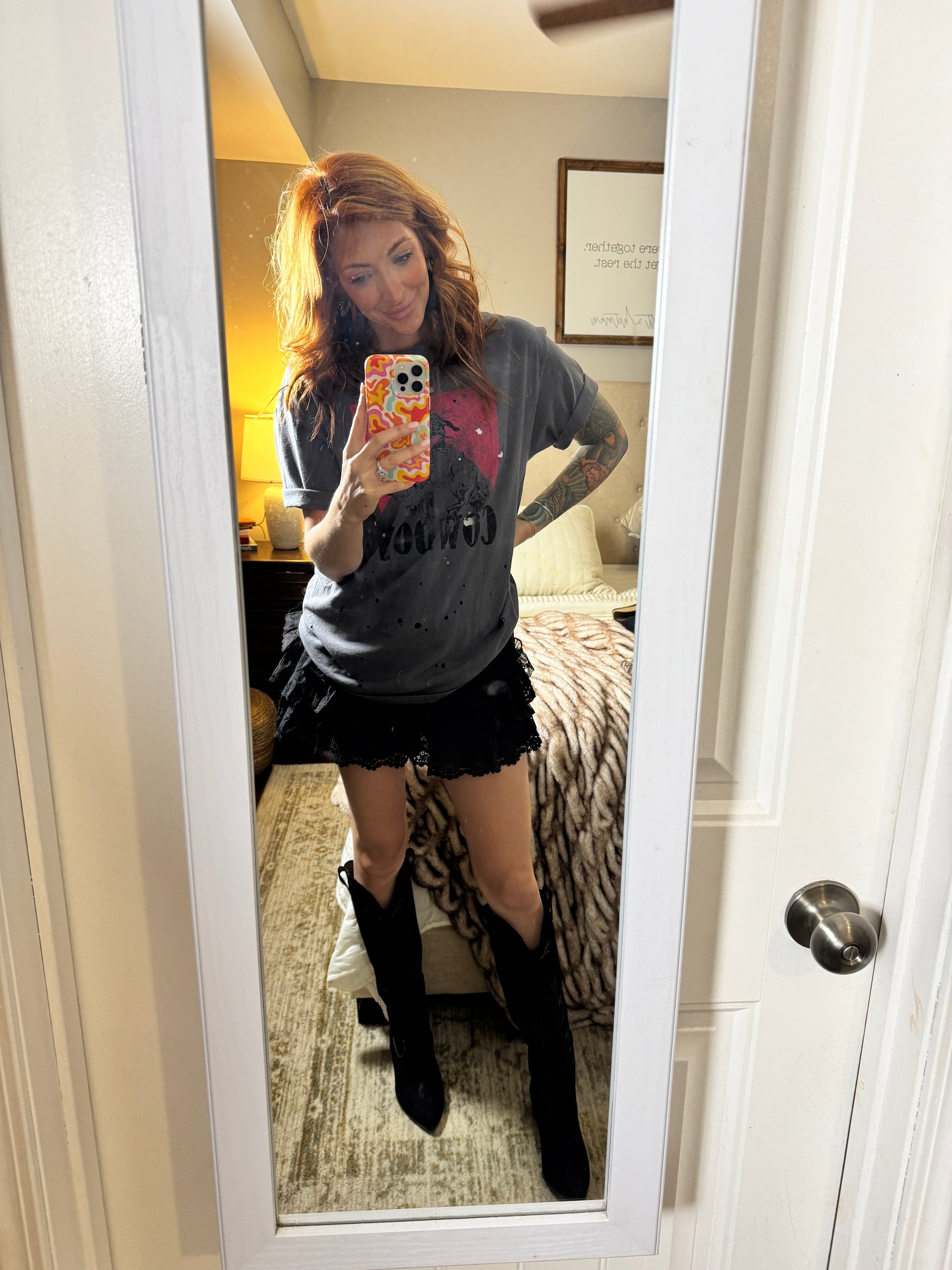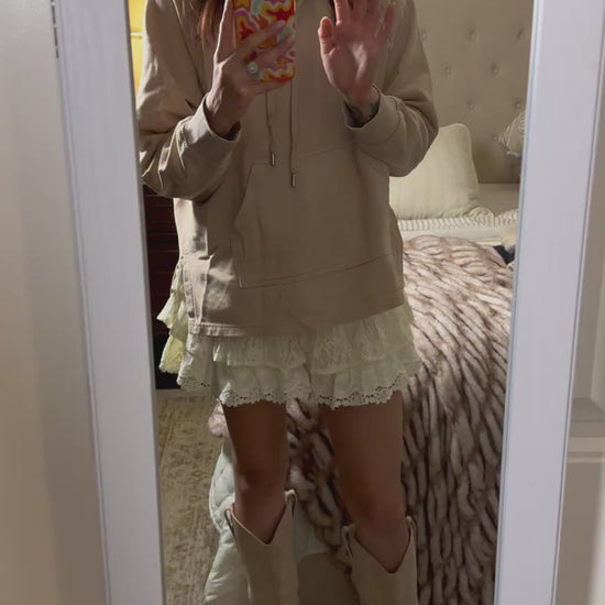 Romantic, flirty, and effortlessly chic — The Juliet Shorts (We love that this looks like a skirt!) are a lace lover’s dream. Each tier features a unique lace pattern for stunning texture and dimension, fully lined for comfort and confidence. The elastic waistband offers an easy, flattering fit, finished with a dainty lace bow detail (purely decorative, but oh-so-pretty).