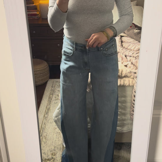 The Free Bird Wide Leg Denim is a true wide-leg jean with serious vintage soul. Featuring a unique denim inset panel that gives subtle movement and dimension, these are not a barrel and not a flare—just a perfectly balanced, effortlessly cool wide leg that feels straight out of the hippie days.