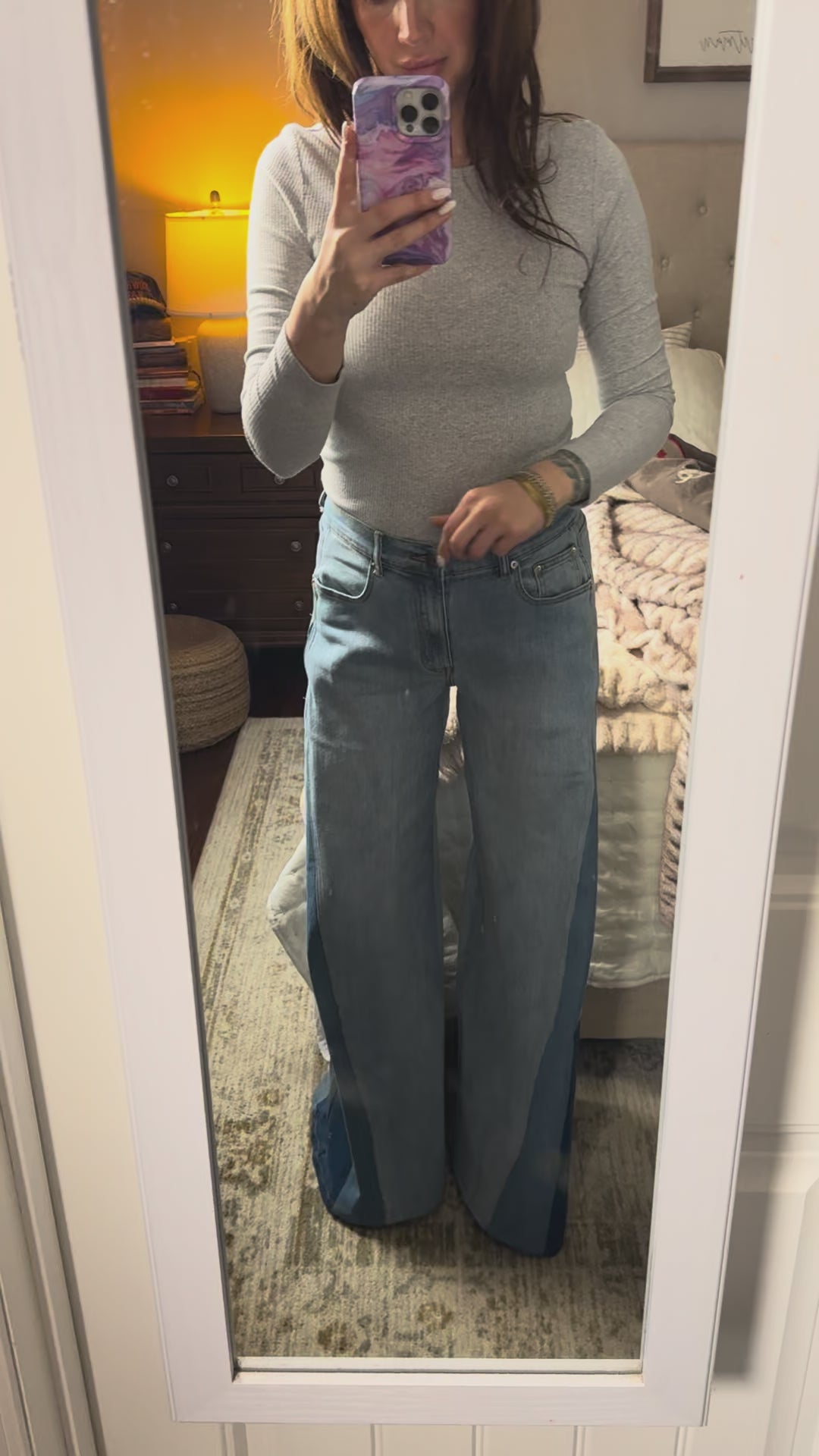 With a 31” inseam, these barely graze the floor on me at 5’8”, making them absolute magic with platforms, Converse, sneakers, or even snow boots. They’re designed to sit high-rise at the belly button, hugging just right through the waist and hips before flowing out into that dreamy wide leg.