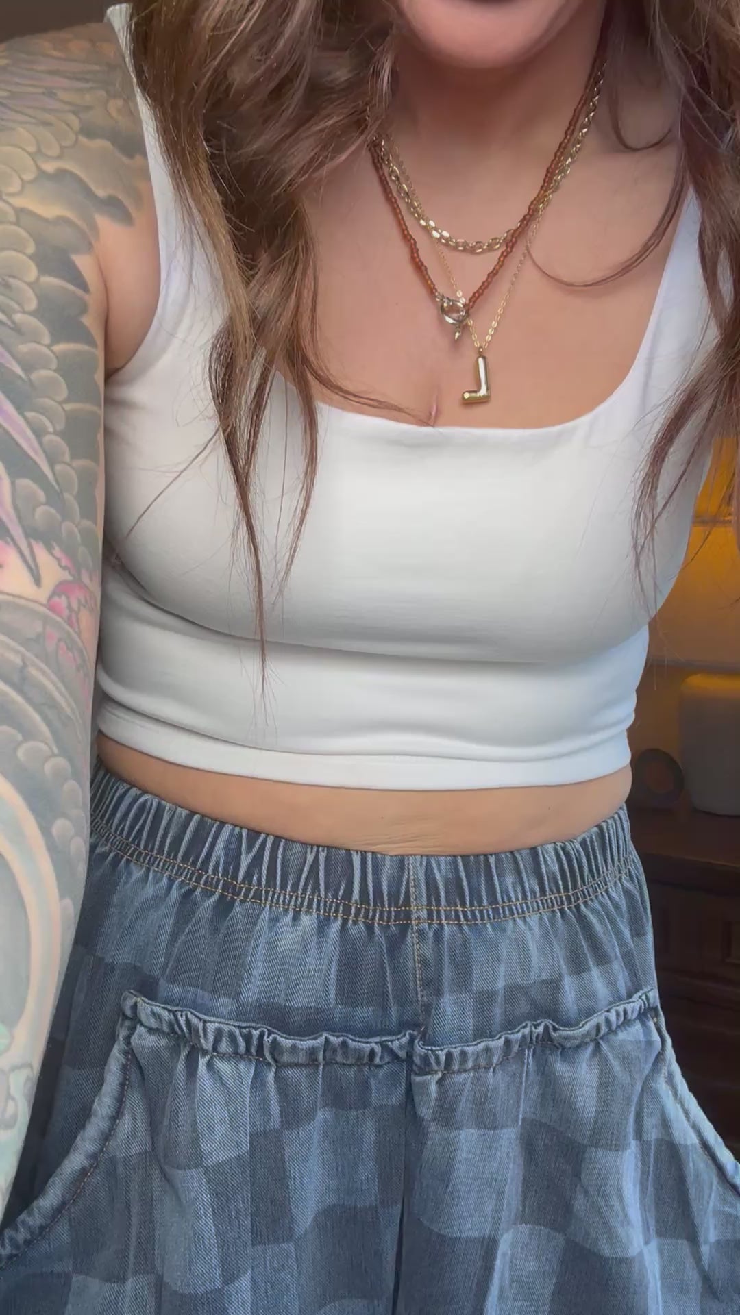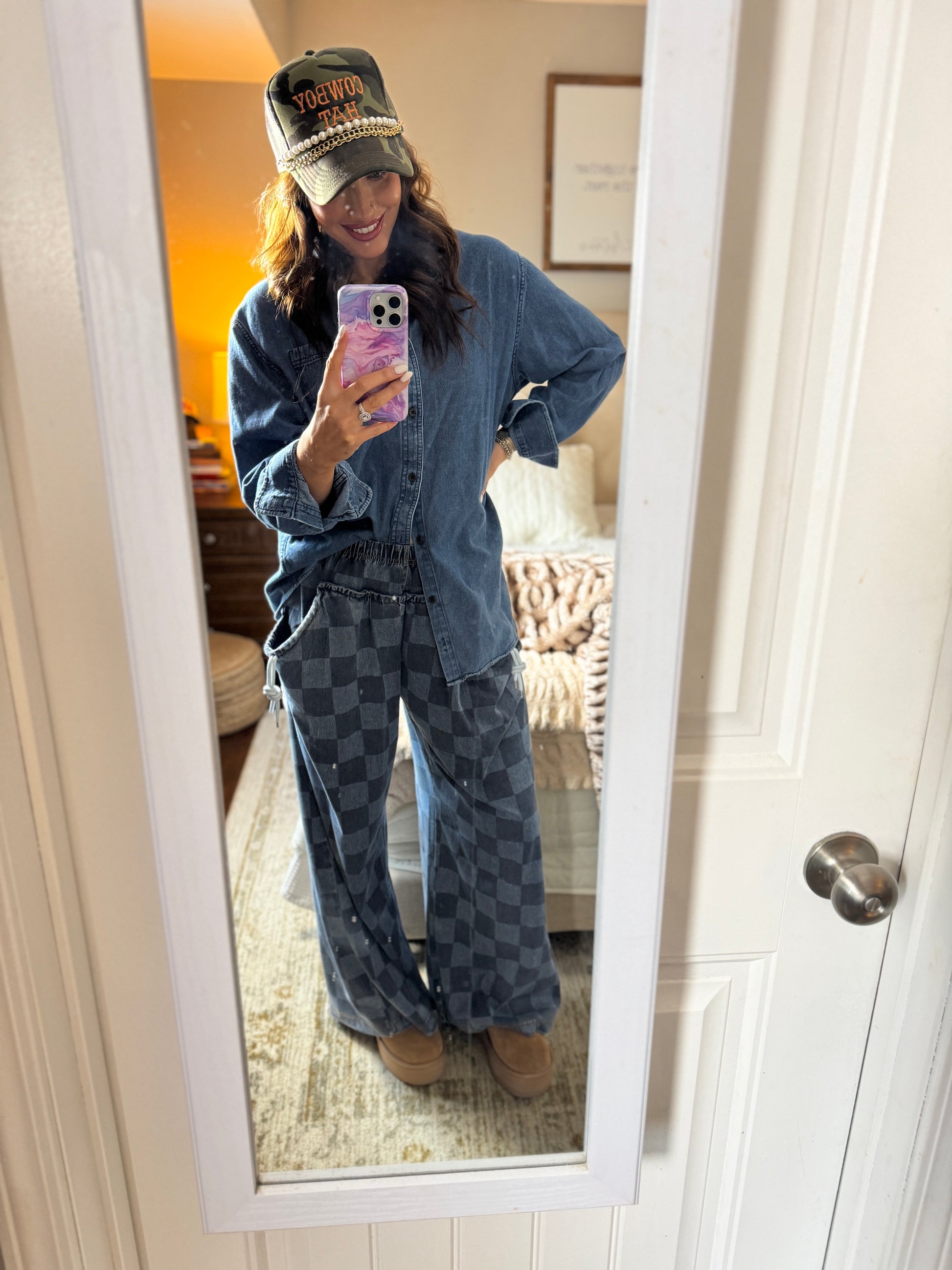 Designed to be styled multiple ways, these pants are your go-to for mixing textures, patterns, and vibes. The relaxed, drapey fit paired with a subtle check pattern makes them easy to dress up or down — from denim-on-denim days to cozy knits, sporty oversized sweaters, or clean neutral looks.